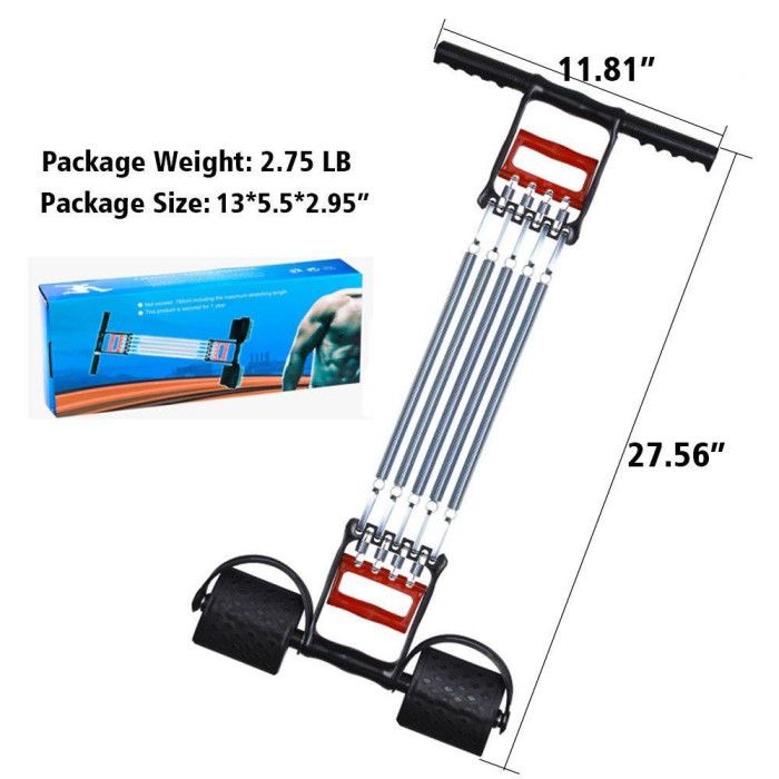 • (প্রতিটা স্প্রিং এর জন্য) স্প্রিংস রিচ 1.5 M/59" স্ট্রং এন্ড কমফোর্টেবল স্ট্রিম্লিং ডিজাইন হ্যান্ডেলস, গ্রেট টাইটনেস, হার্ড টু ডিফর্ম চেস্ট এক্সপ্যান্ডার এন্ড হ্যান্ড গ্রিপার এন্ড পুল-আপ বারস 3 in 1 ইজি টু ইন্সটল এন্ড ইউজ.